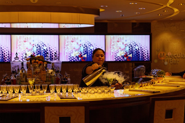 Bars auf der Celebrity Reflection: Care al Bacio, Celebrity Central Bar, Passport Bar, Cellar Master, Martini Bar, Crush, Pool Bar, Molecular Bar, Sunset Bar, Fortunes Casino Bar