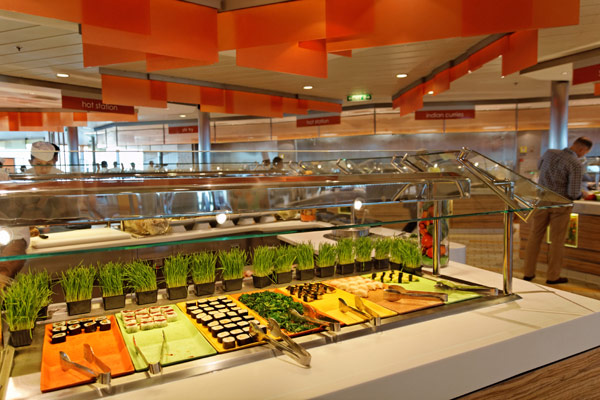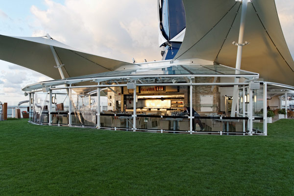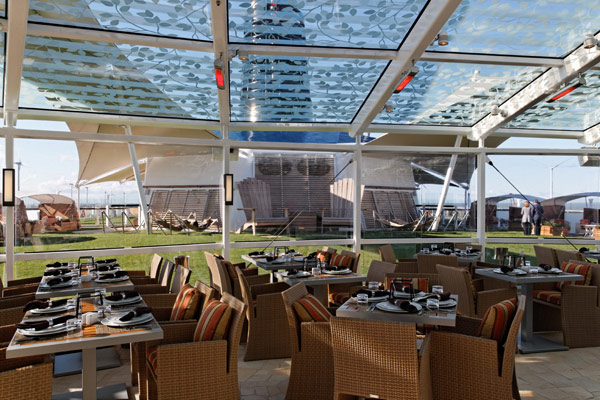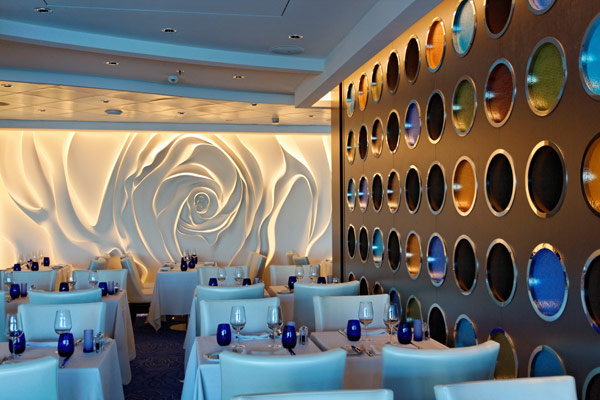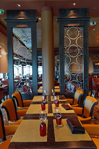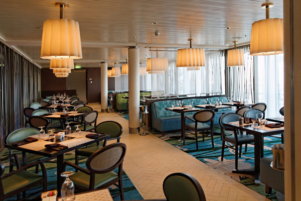 Restaurants der Celebrity Reflection: Blu, Bistro on Five, Lawn Club Grill, Tuscan Grille, Murano, Qsine, Mast Grill, Opus Dining Room, Oceanview Cafe, The Porch