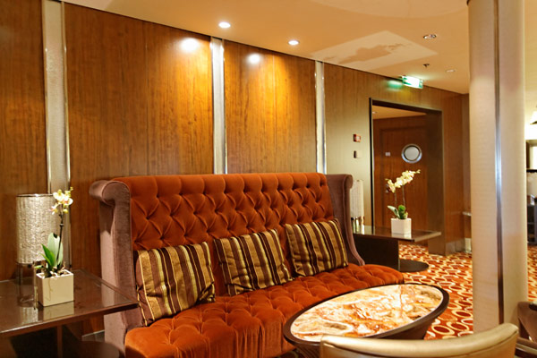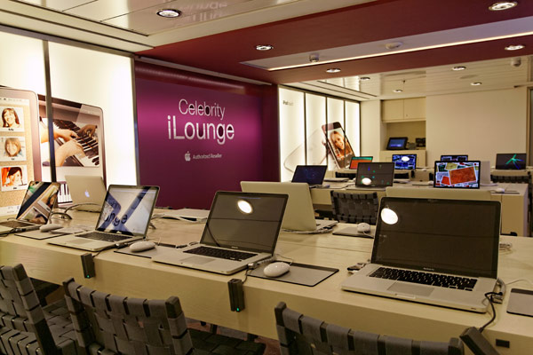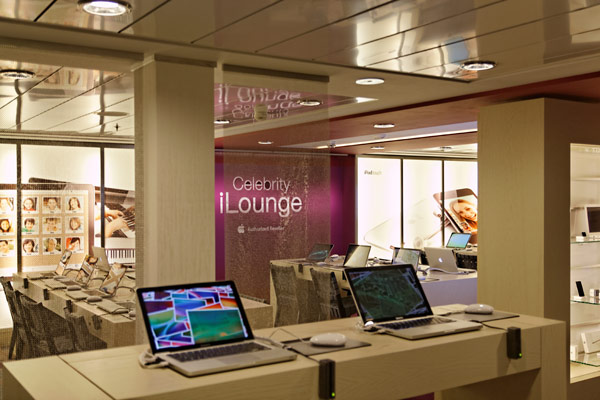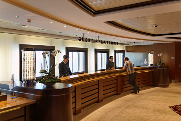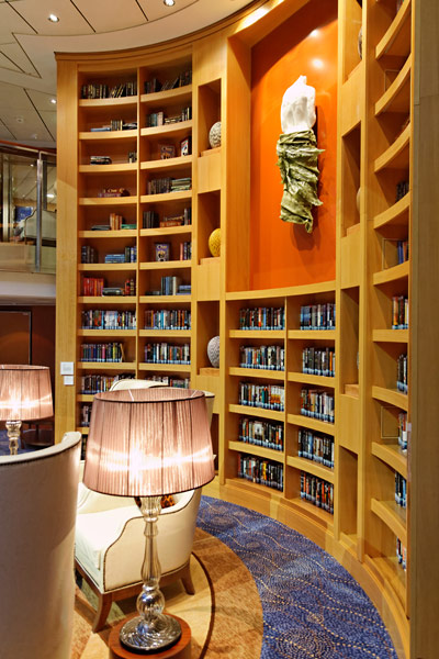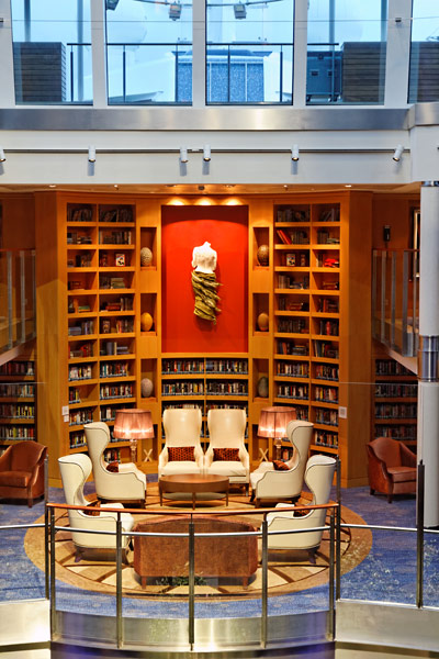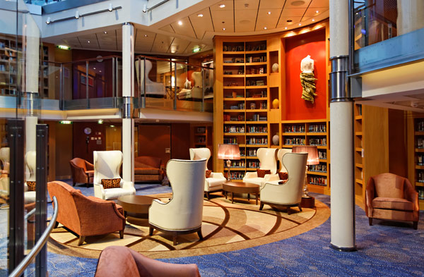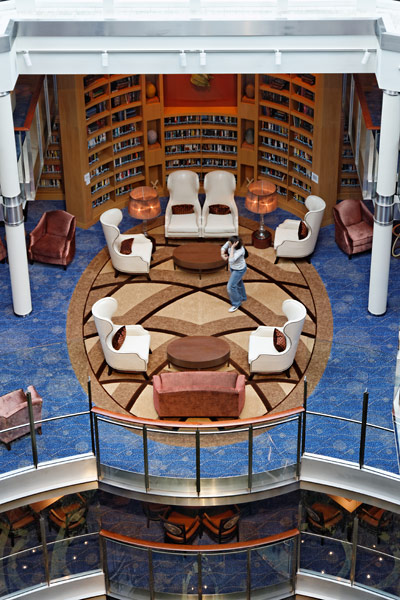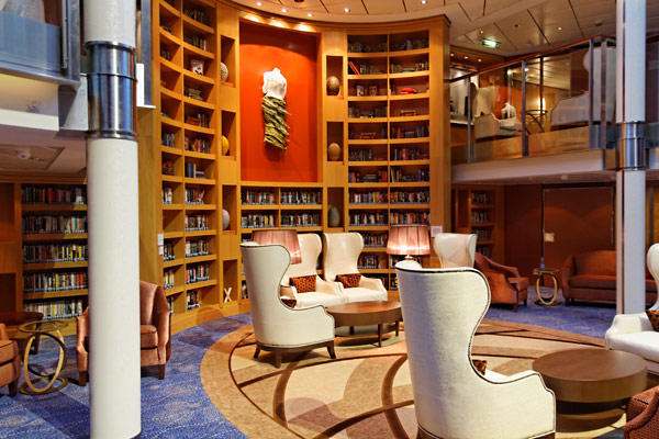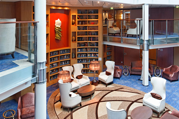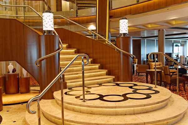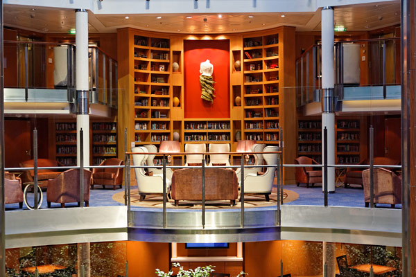 Atrium der Celebrity Silhouette mit Rezeption, Bibliothek, Hideaway, Card Room und iLounge