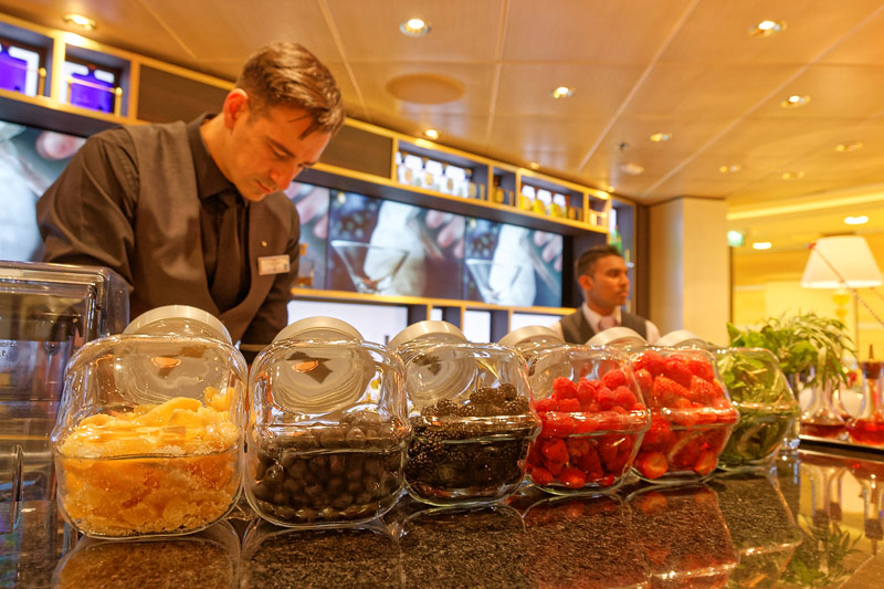 Bars & Cafés auf der Celebrity Silhouette: Café Bacio, Cellar Masters Weinbar, Ensemble Lounge, Martini Bar und Crush, Michael's Club, Molecular Bar, Sunset Bar