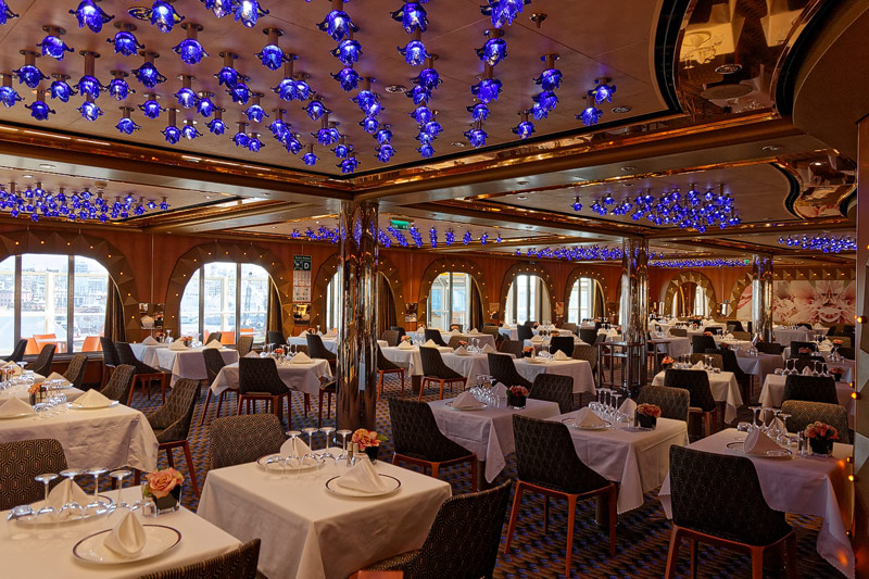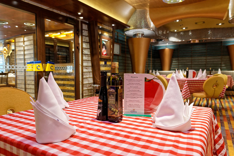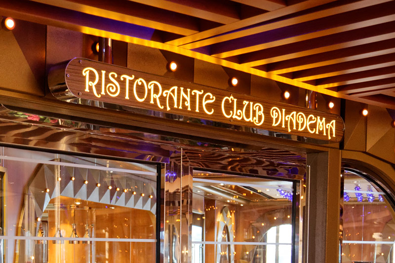 Restaurants der Costa Diadema: Hautrestaurants Adularia und Fiorentina, Buffet-Restaurant Corona Blu, Club Diadema, Pizzeria, Samsara, Teppanyaki