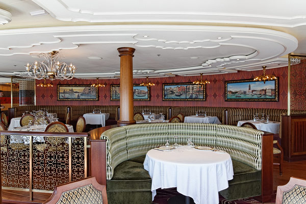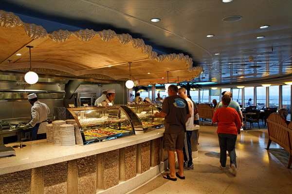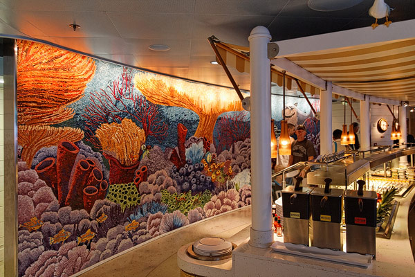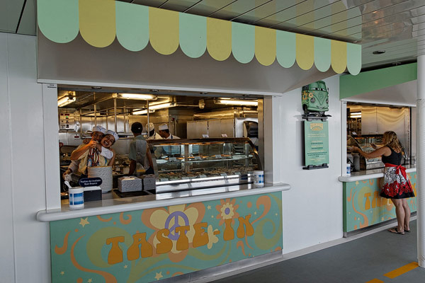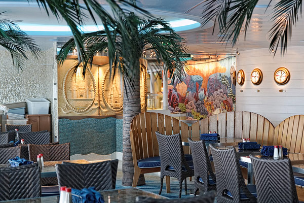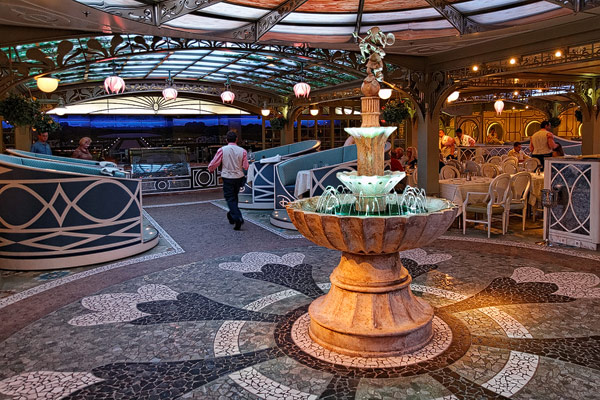 Restaurants der Disney Dream: Cabanas Buffet, Animator's Palate, Enchanted Garden, Royal Palace, Remy, Palo, Pool Grills