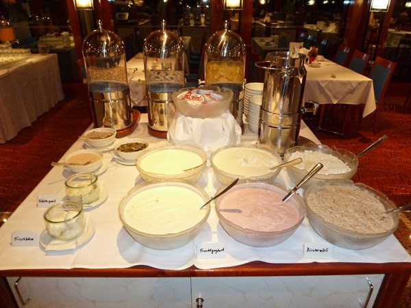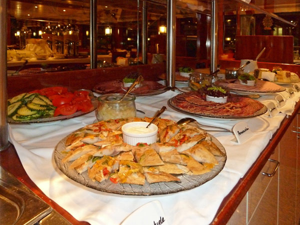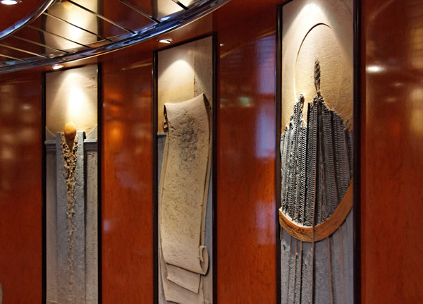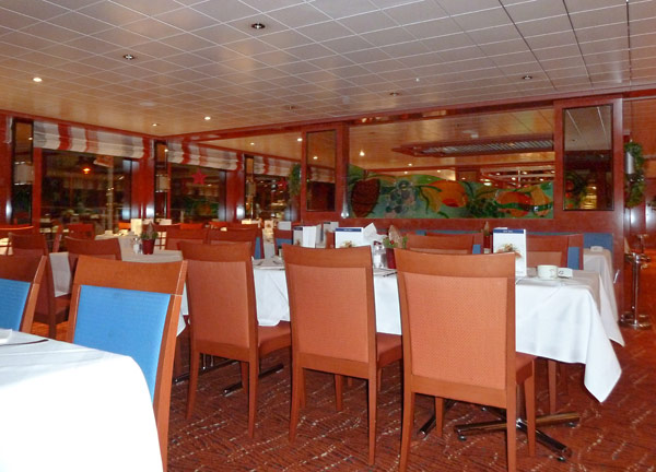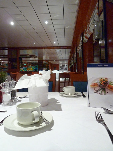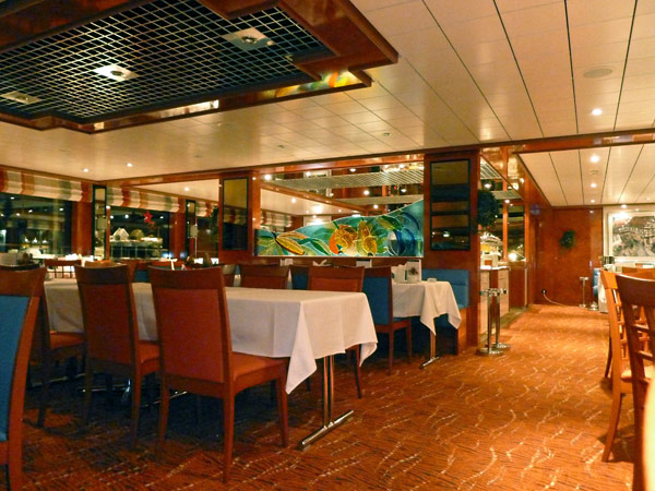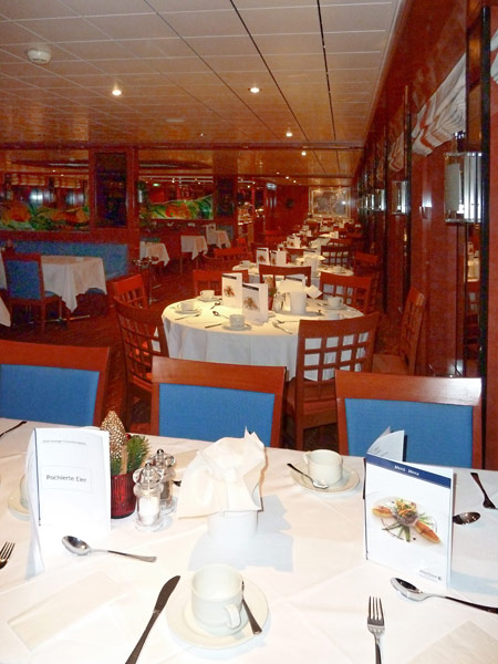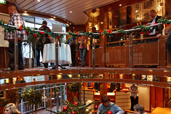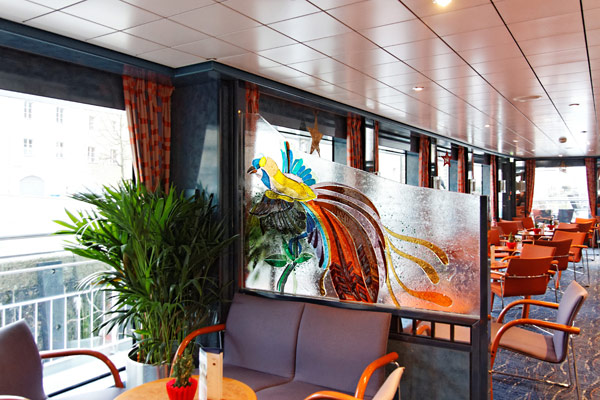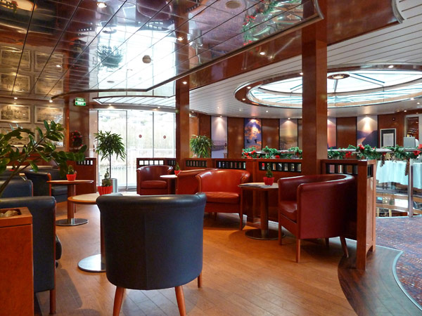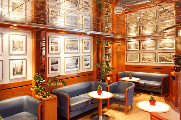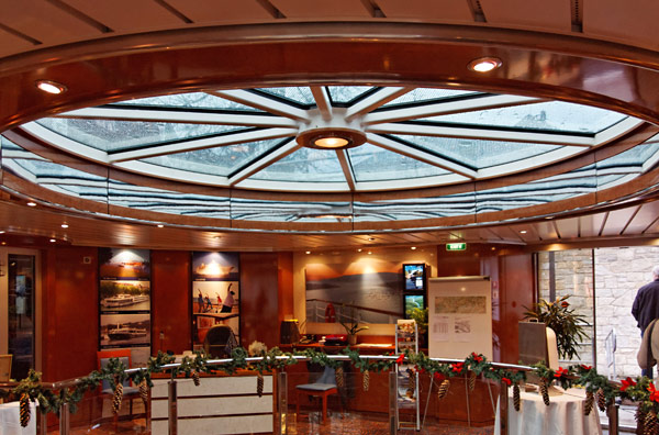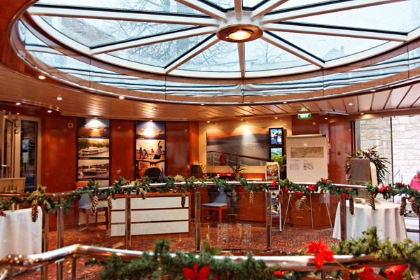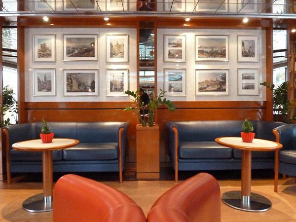 Innenansichten der MS Belvedere: Atrium, Lounge, Restaurant