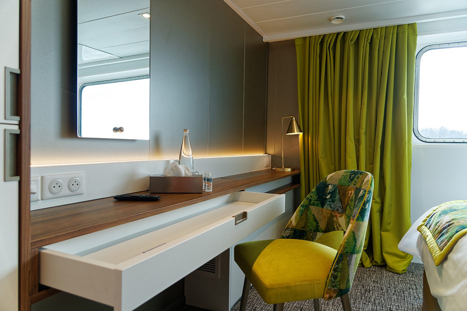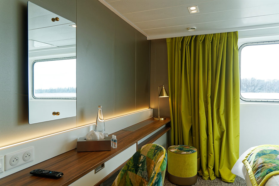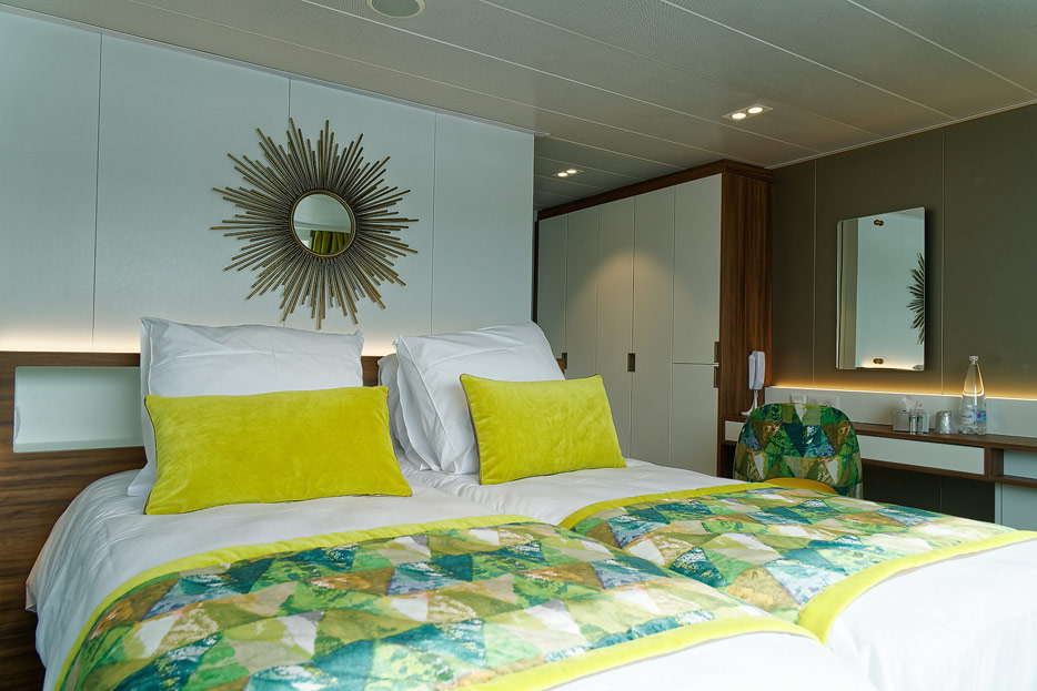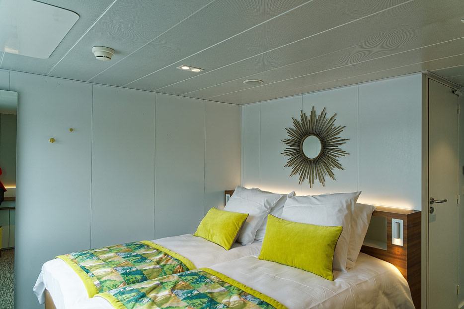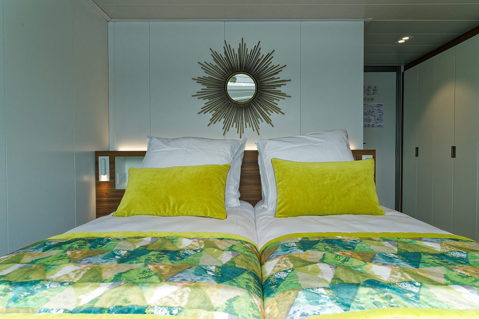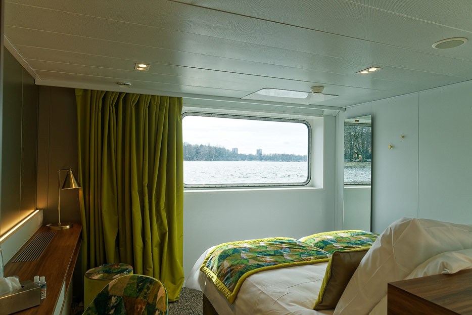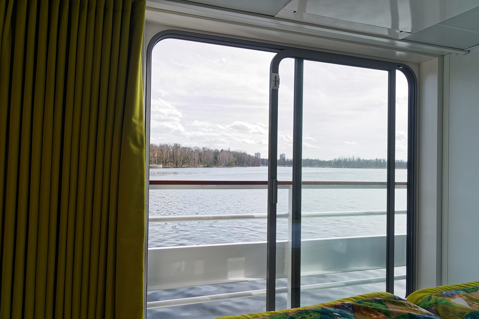 Kabinen der Elbe Princesse II: Kabine am Unterdeck sowie Unterschied "Französischer Balkon" in einer Kabine des Oberdecks