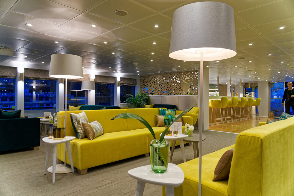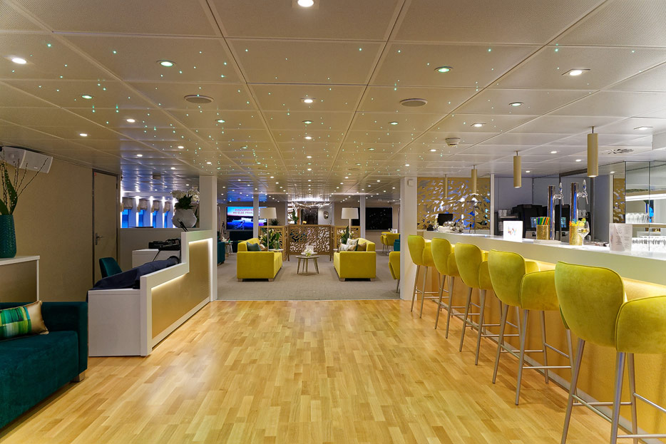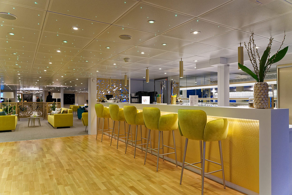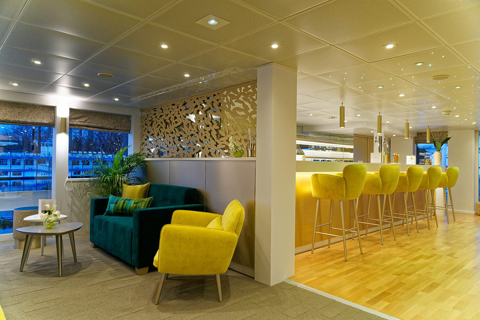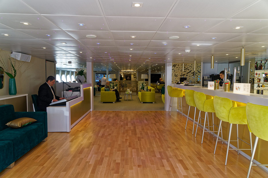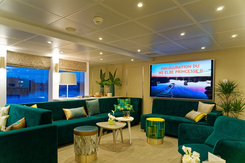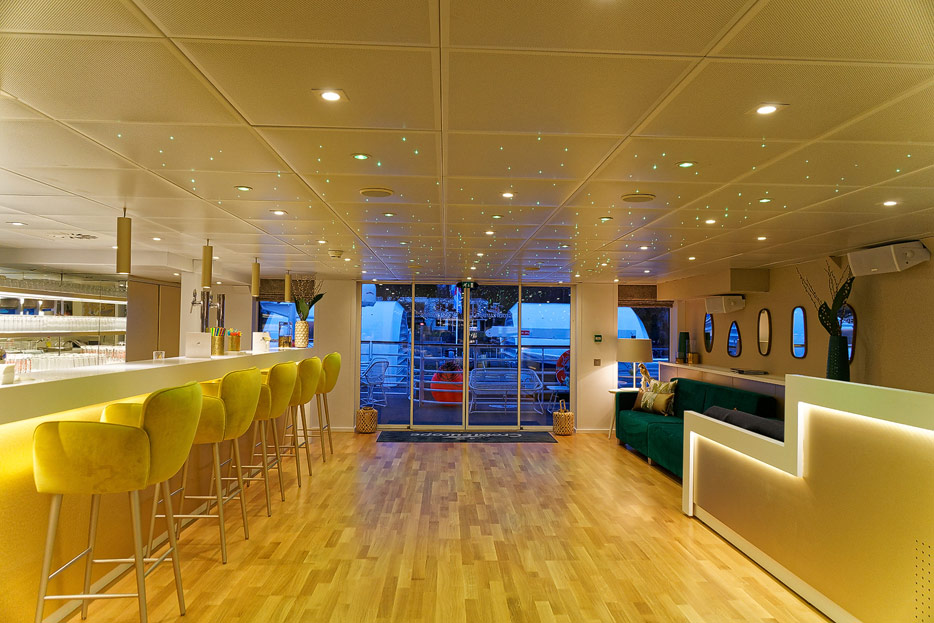 Lounge, Bar, Bar-Außenbereich und Rezeption der Elbe Princesse II
