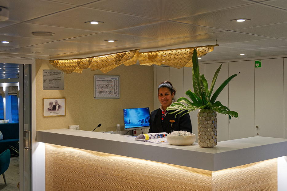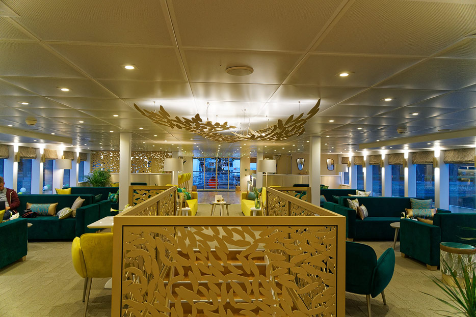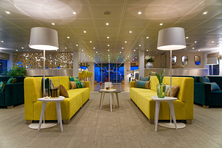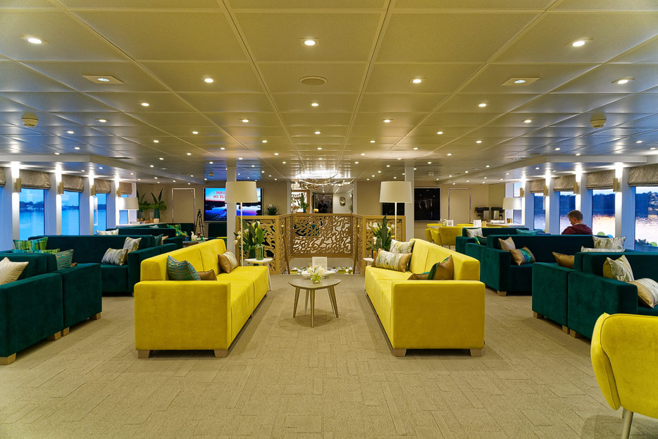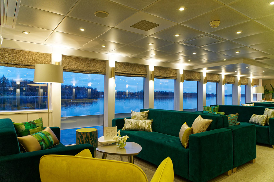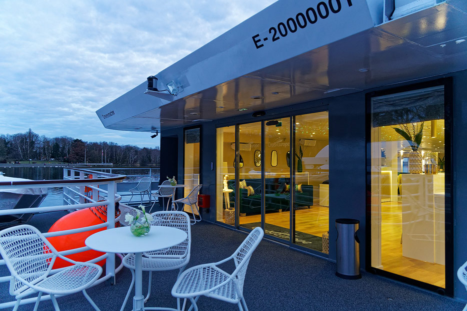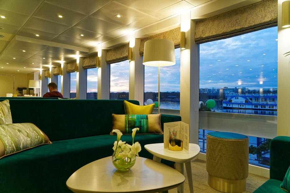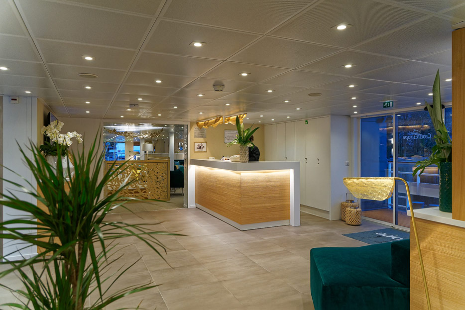 Lounge, Bar, Bar-Außenbereich und Rezeption der Elbe Princesse II