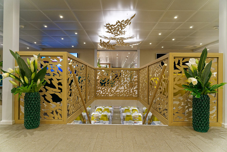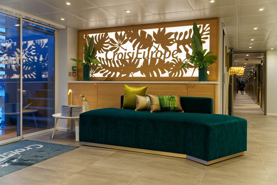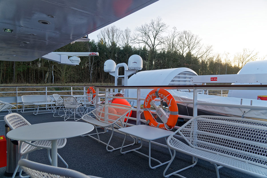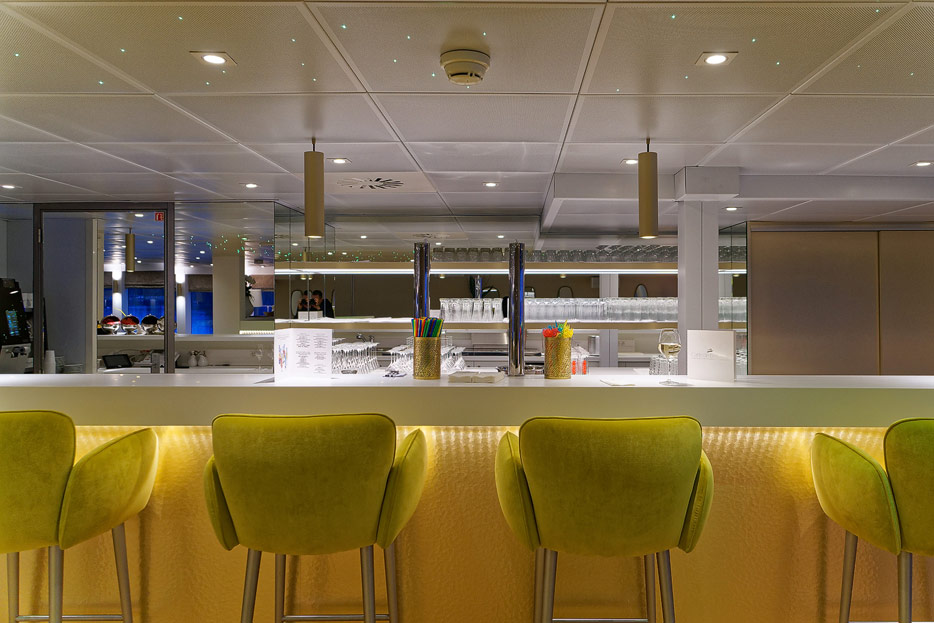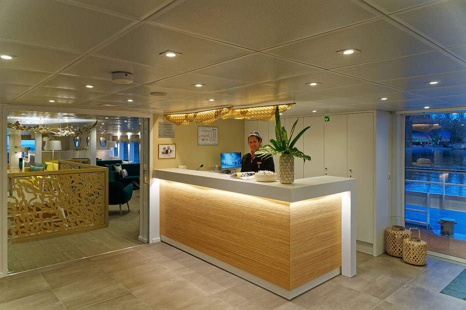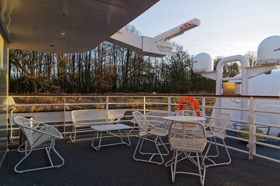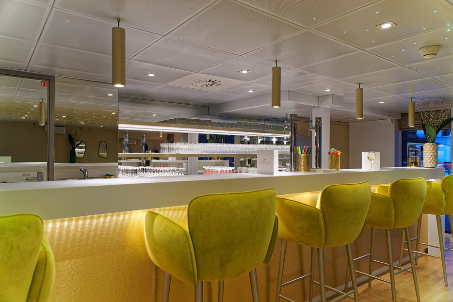 Lounge, Bar, Bar-Außenbereich und Rezeption der Elbe Princesse II