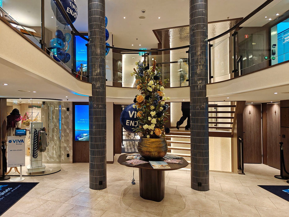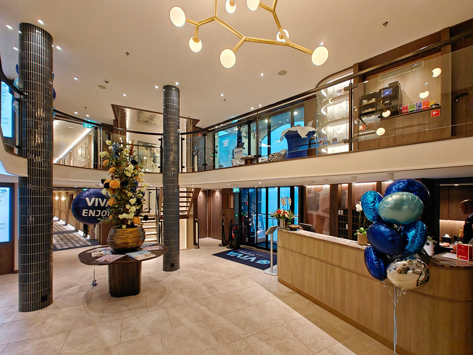 Bilder des Atriums der Viva Enjoy, inklusive Shop, Rezeption, Kaffeestation etc.