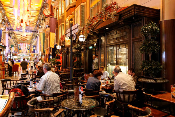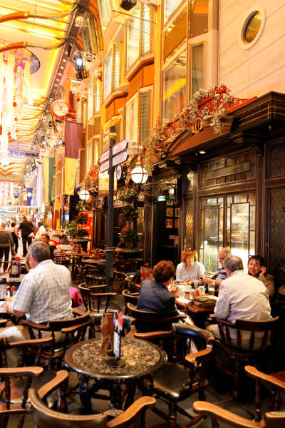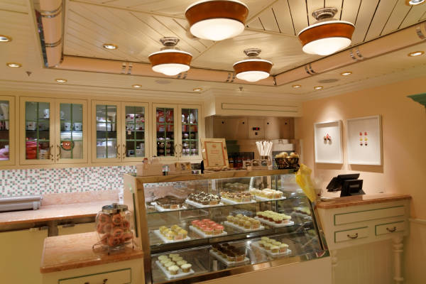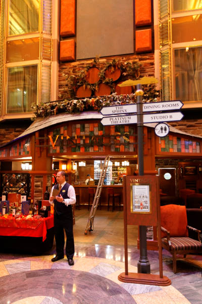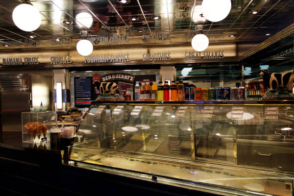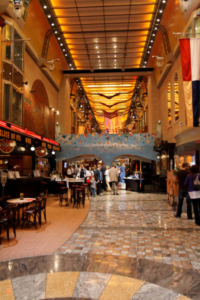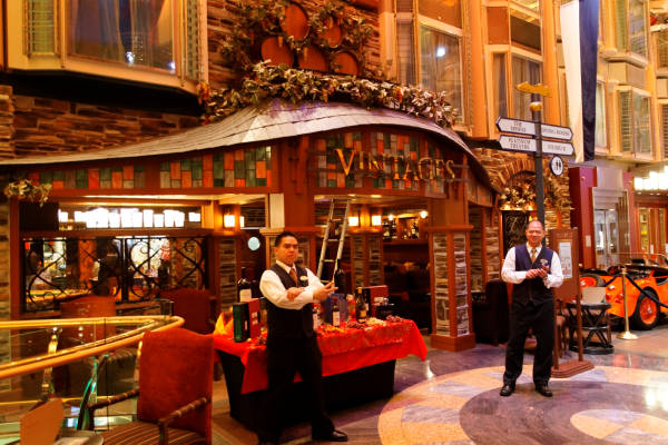 Royal Promenade der Liberty of the Seas inklusive Cupcake Cupboard, Sorrento's Pizzeria, Hoof and Claw Pub, Ben & Jerry's Eiscafe, Promenade Cafe, Champagne Bar und Vintages Weinbar