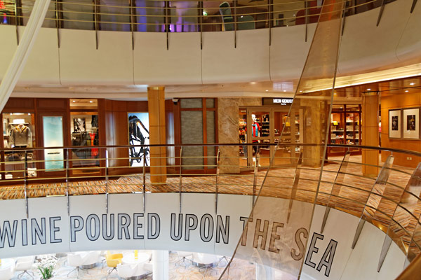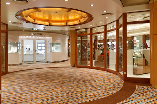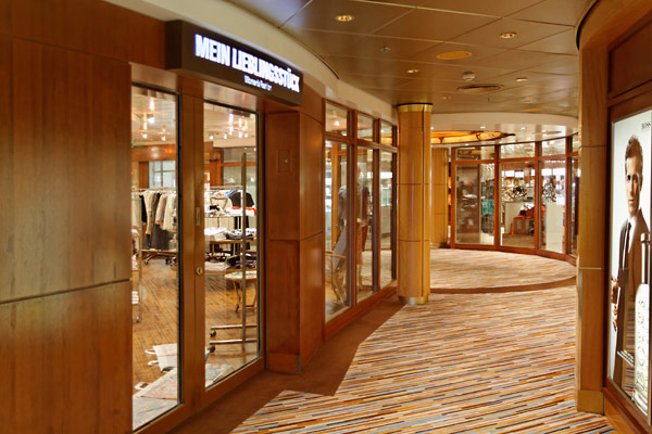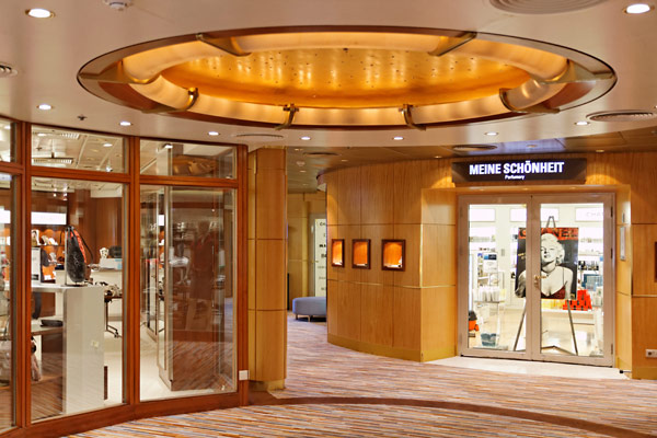 Weitere öffentlich Bereiche der Mein Schiff 2: Treppenhäuser, Konferenz-Zentrum, Kompass Galerie, Theater, Neuer Wall Shops, Internet Cafe, Reiseleitung