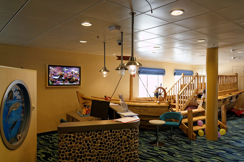 Bereiche für Babies, Kinder und Teens auf der Mein Schiff 3: Kids Club "Insel der Seeräuber", Teenslounge "Sturmfrei" (wird später ergänzt), Videogames "Spielplatz", Baby-Zimmer