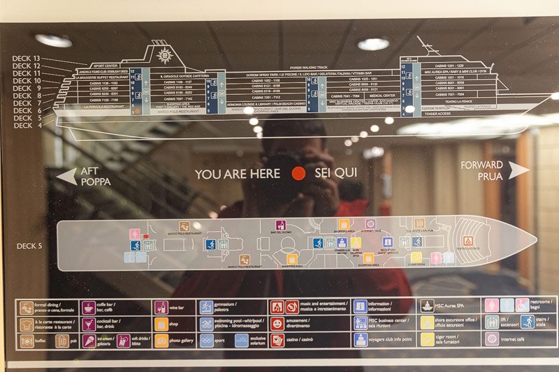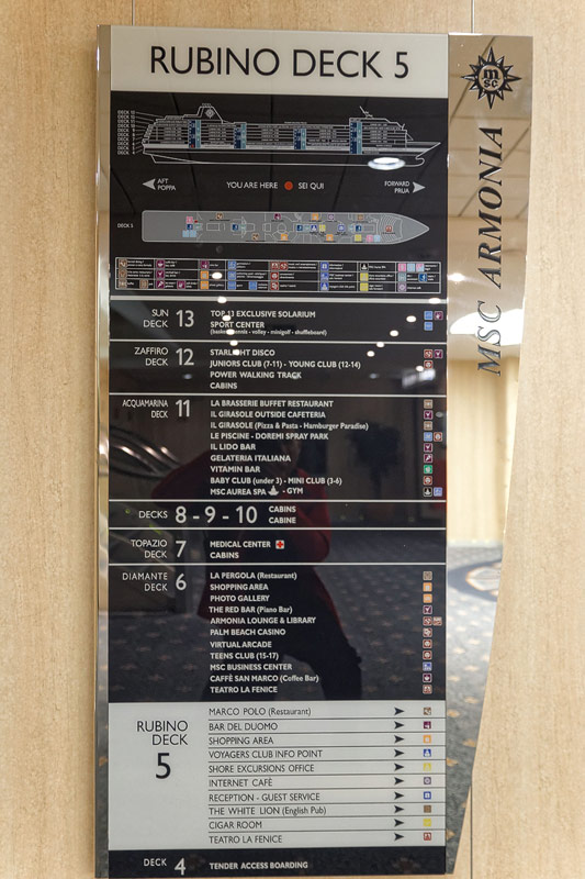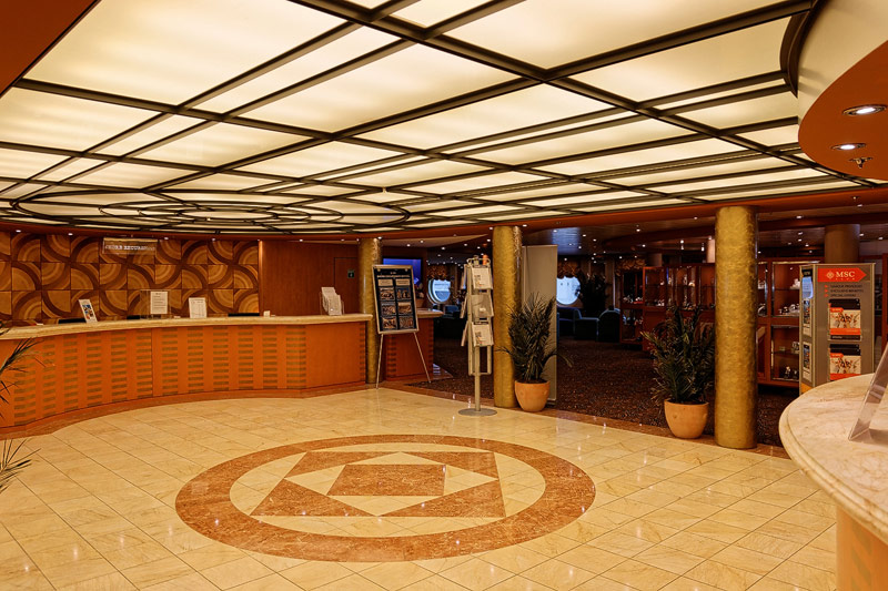 Sonstige Bereiche der MSC Armonia: Casino, Landausflugs-Desk, Rezeption, Shopping, Sportsdeck, Theater