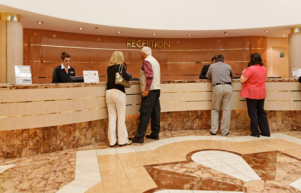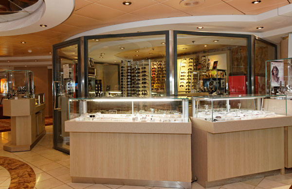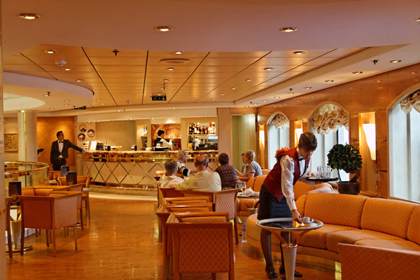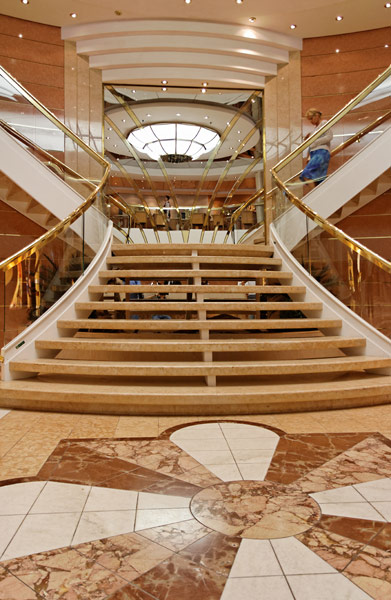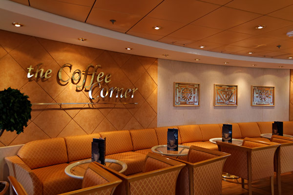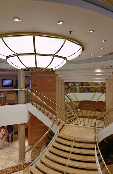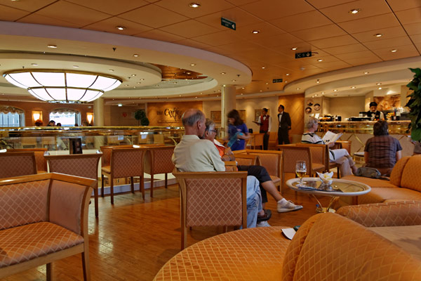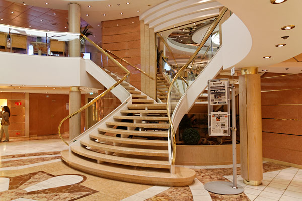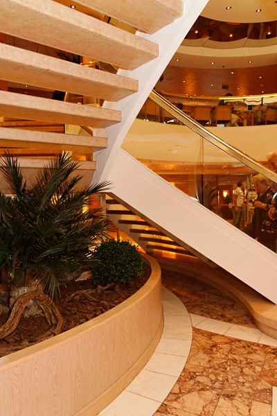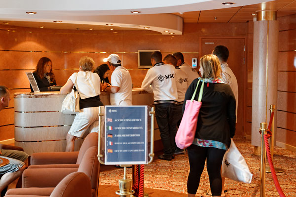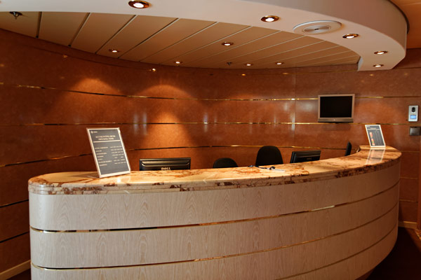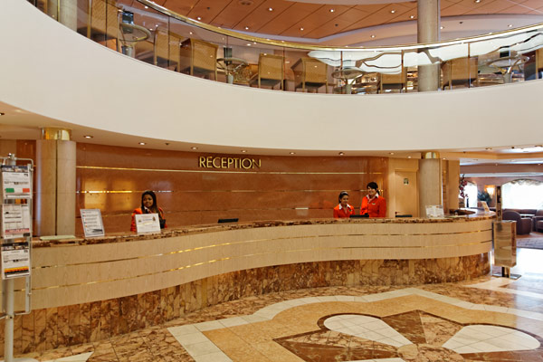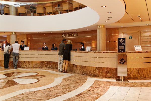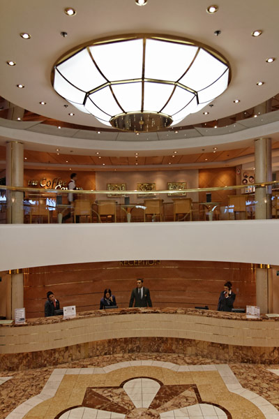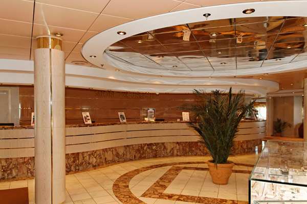 Atrium der MSC Lirica, Rezeption, Short Excursion Desk, Purser, Coffee Corner