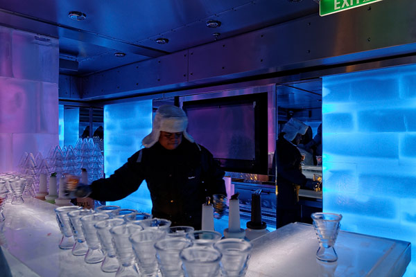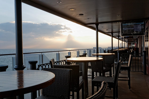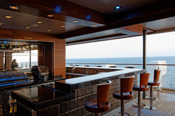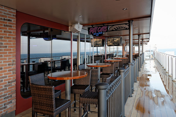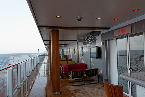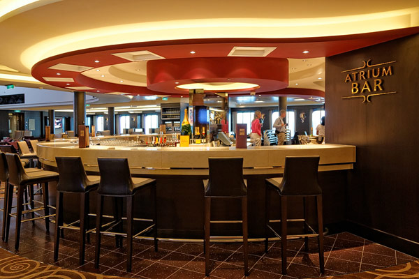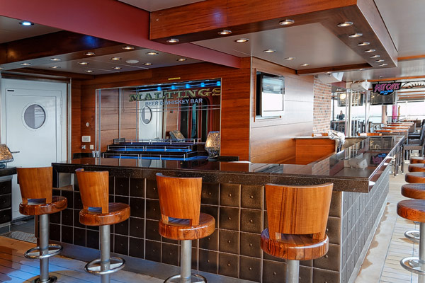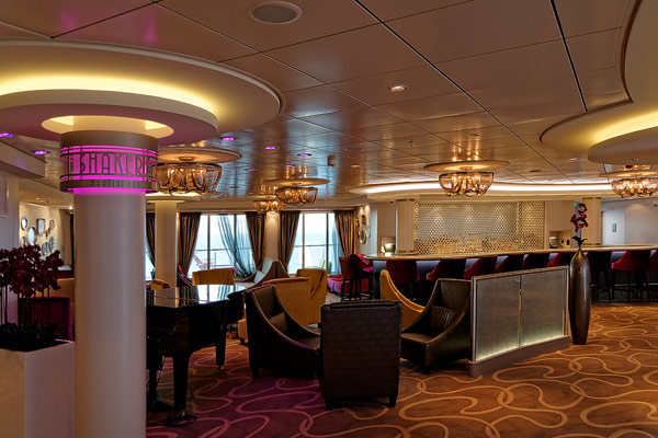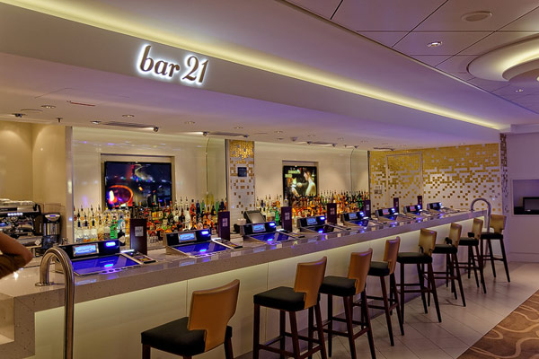 Bars und Lounges der Norwegian Breakaway: Atrium Cafe, Bar 21, Bliss Lounge Disco, Fat Cat's Jazz Club, Headliners Comedy Club, Humidor Cigar Lounge, Ice Bar, Maltings Whiskey- und Bier-Bar, Mix Bar, Shaker's, Waves Pool Bar