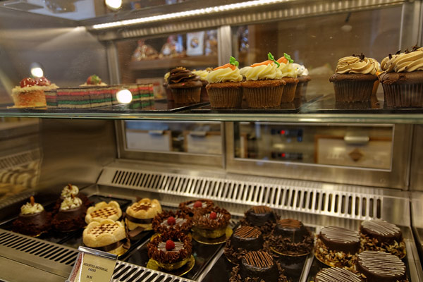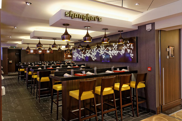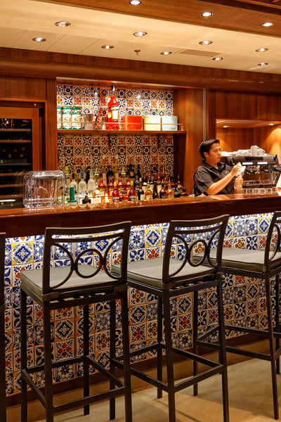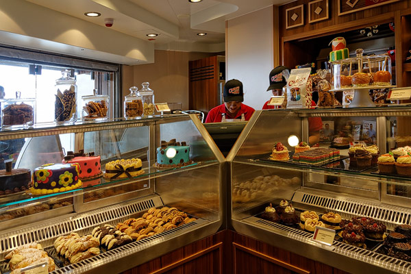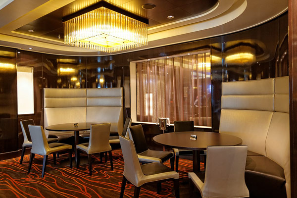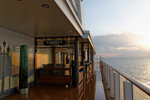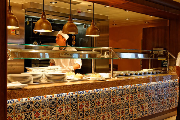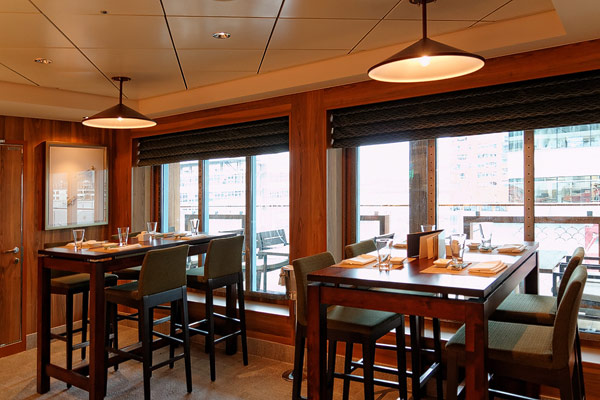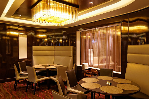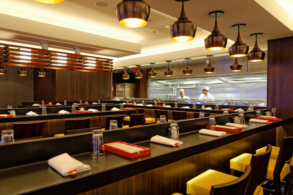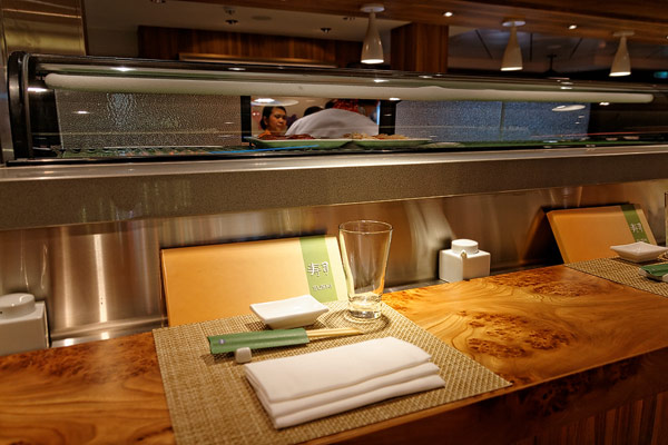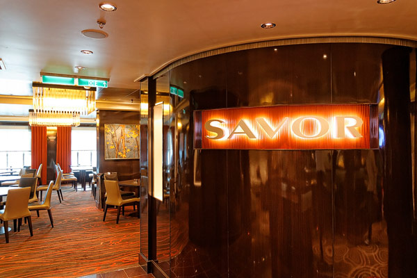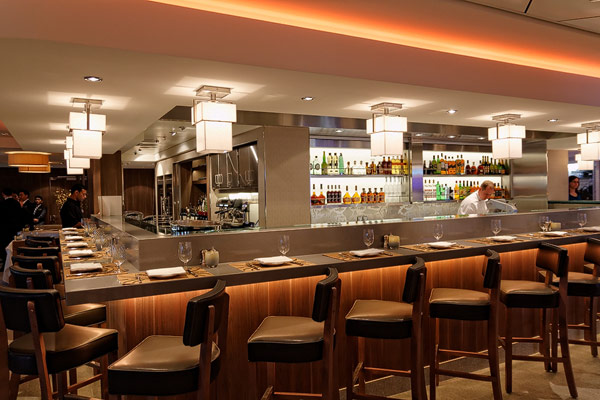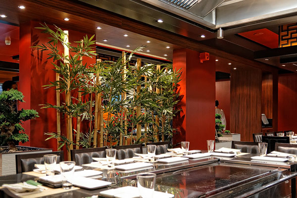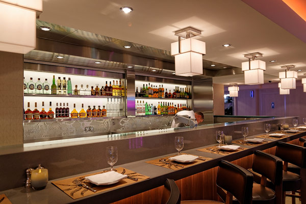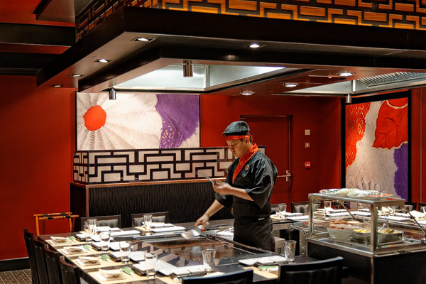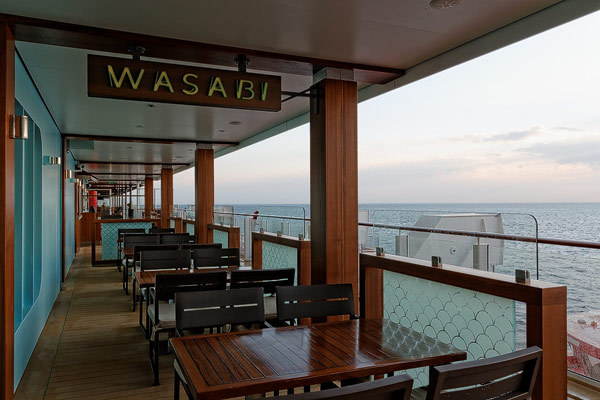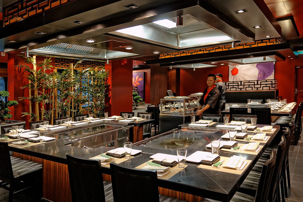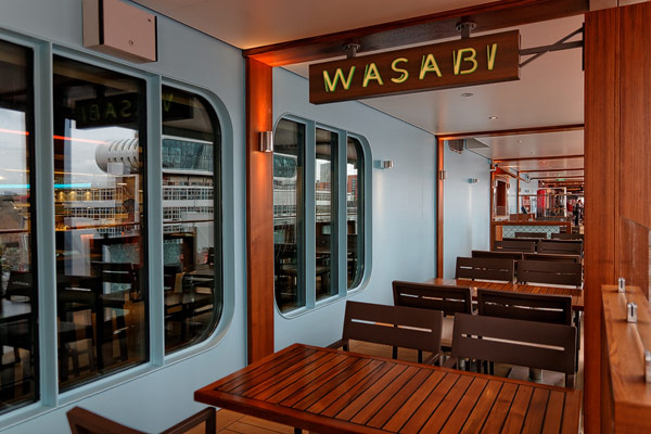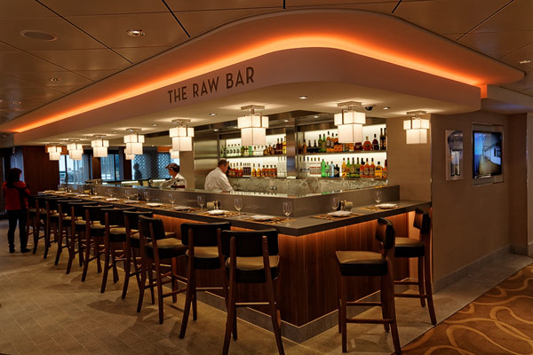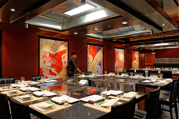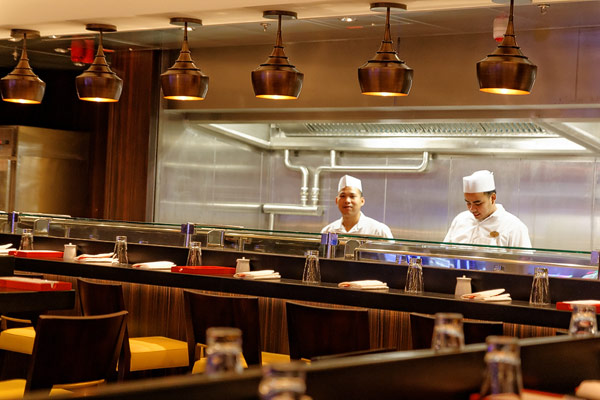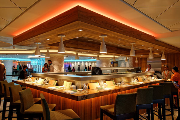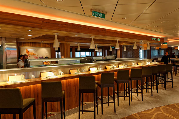 Restaurants der Norwegian Breakaway: Le Bistro, Cagney's Steakhouse, Moderno Churrascaria, La Cucina, Carlo's Bakery, Garden Cafe Buffetrestaurant, Savor, Taste, Manhattan Room, Ocean Blue, Raw Bar, Noodle Bar Shanghai, O'Sheehans, Teppanyaki, Uptown Grill, Wasabi, Spiegel Tent
