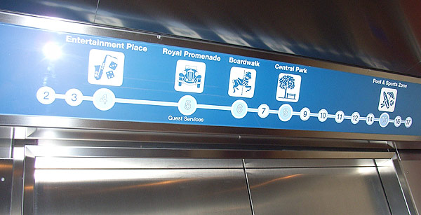 Einige Beispiele für die Vielzahl an Orientierungshilfen auf der Oasis of the Seas