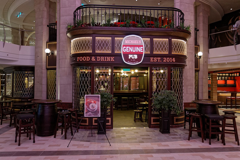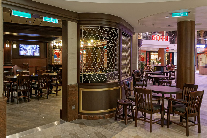 Bars, Lounges und Cafes auf der Quantum of the Seas: Bionic Bar, Boleros, Cafe Promenade, Michael's Genuine Pub, La Patisserie, Schooner Bar, Vintages