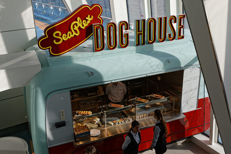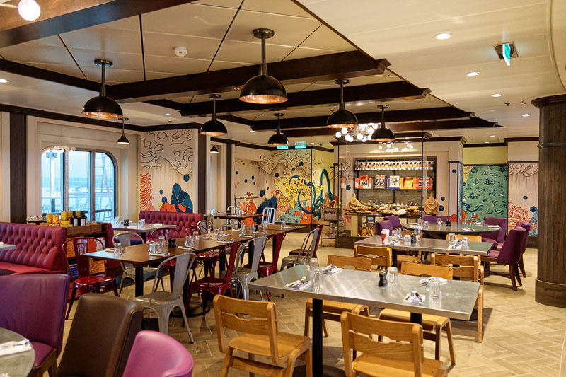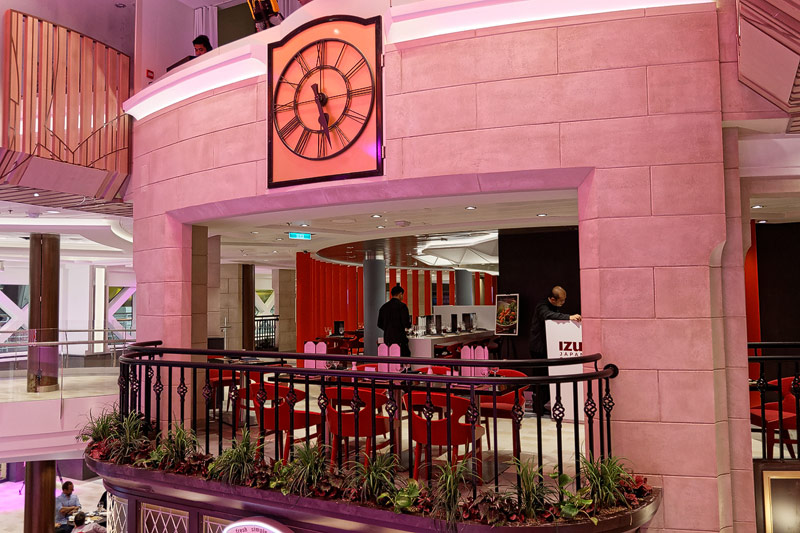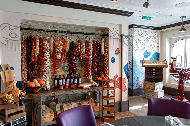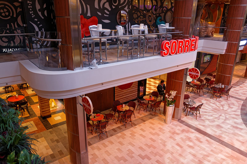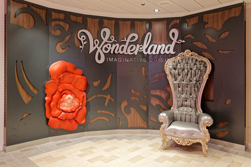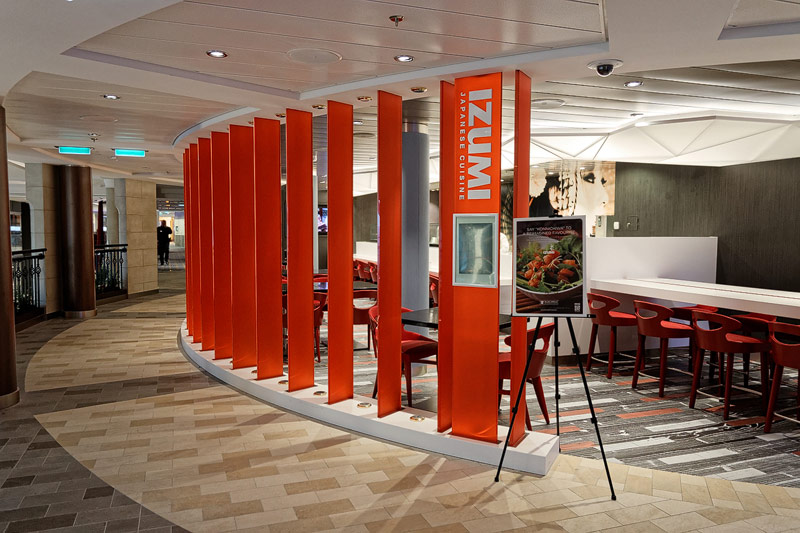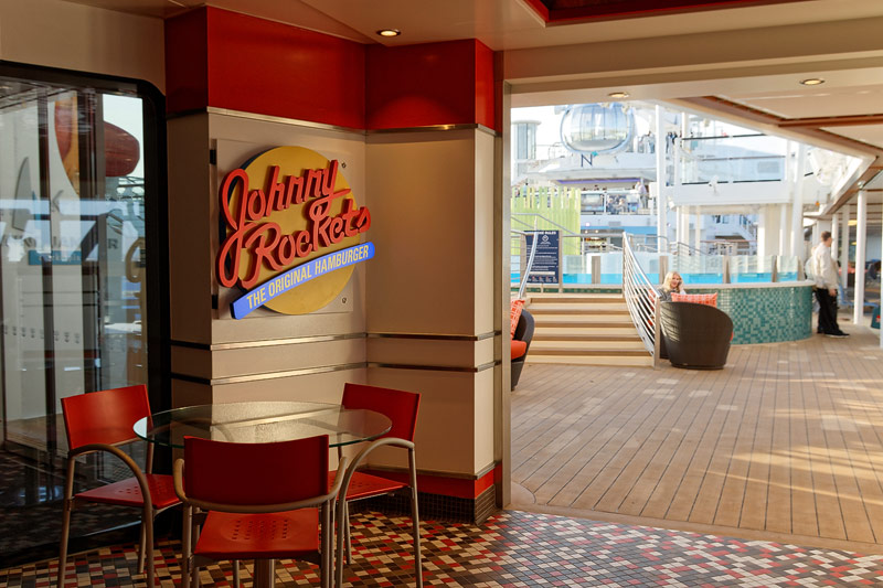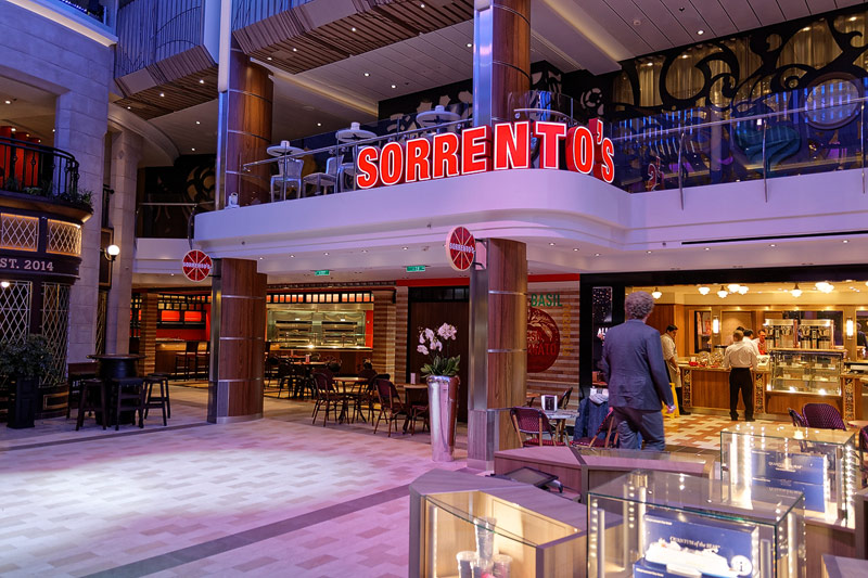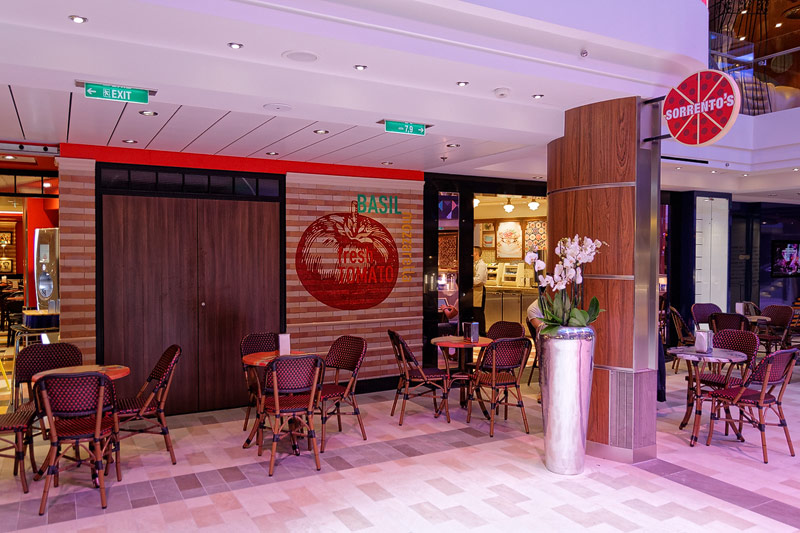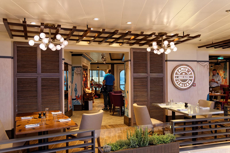 Restaurants der Quantum of the Seas: American Icon, Chic, The Grande, Silk, Coastal Kitchen, Devinly Decadence, Jamie's Italian, Chops Grille, Wonderland, Doghouse, Izumi, Johnny Rockets, Sorrentos, Windjammer Buffet