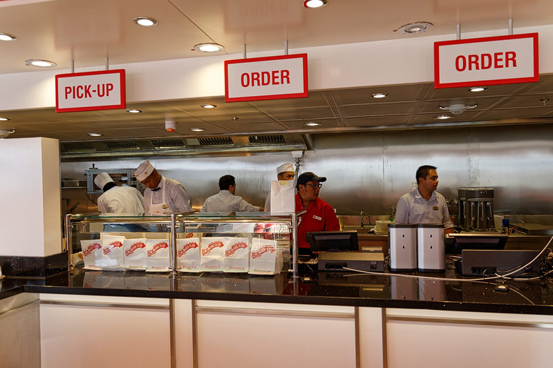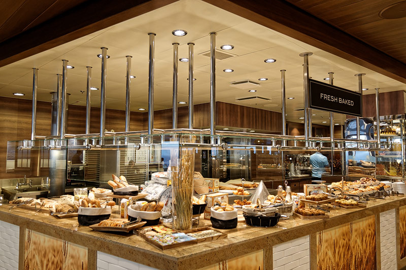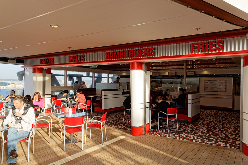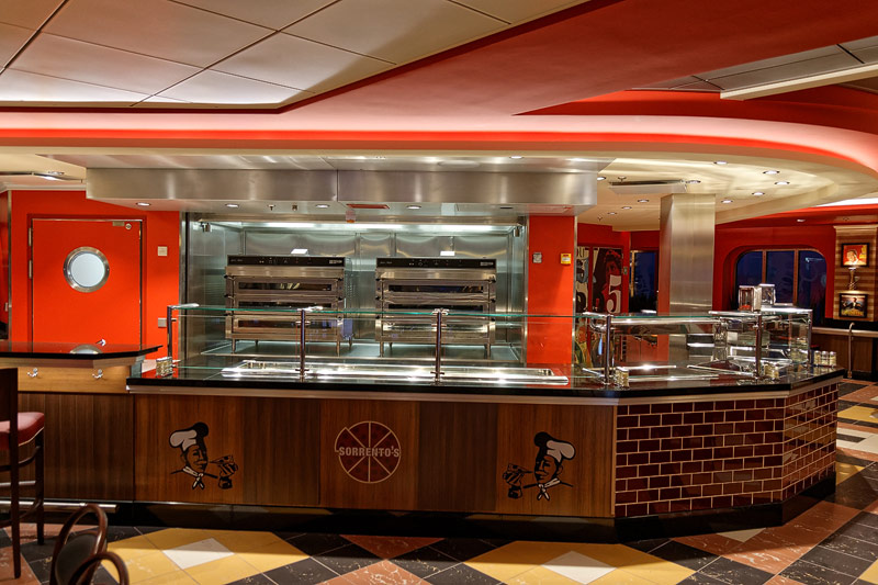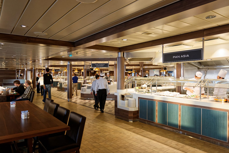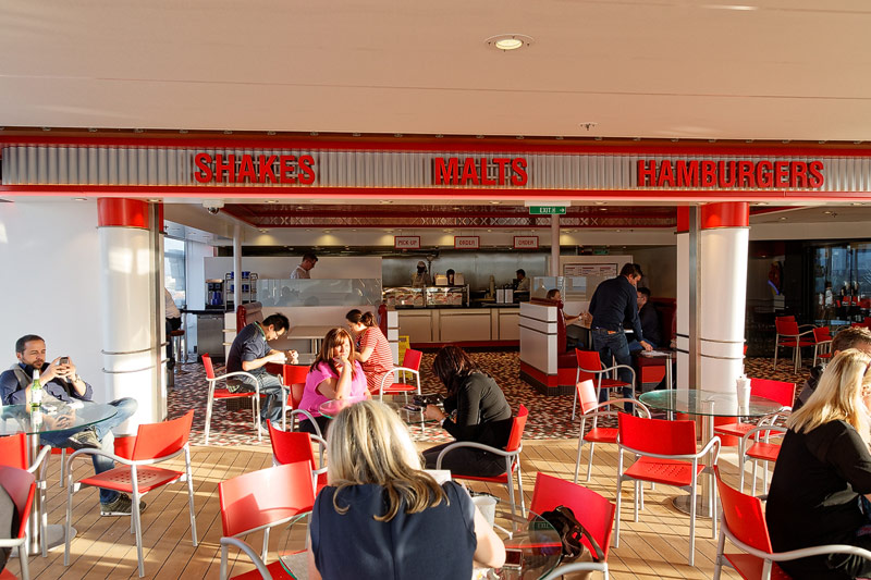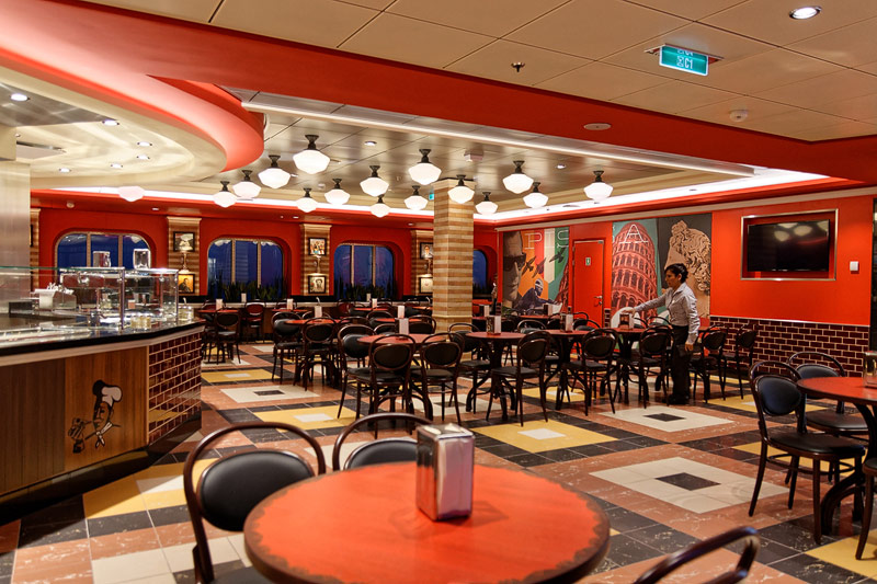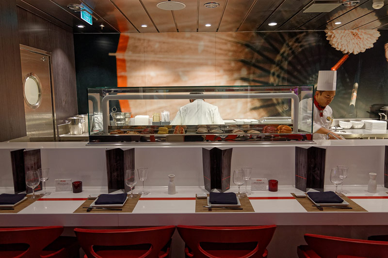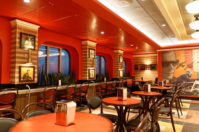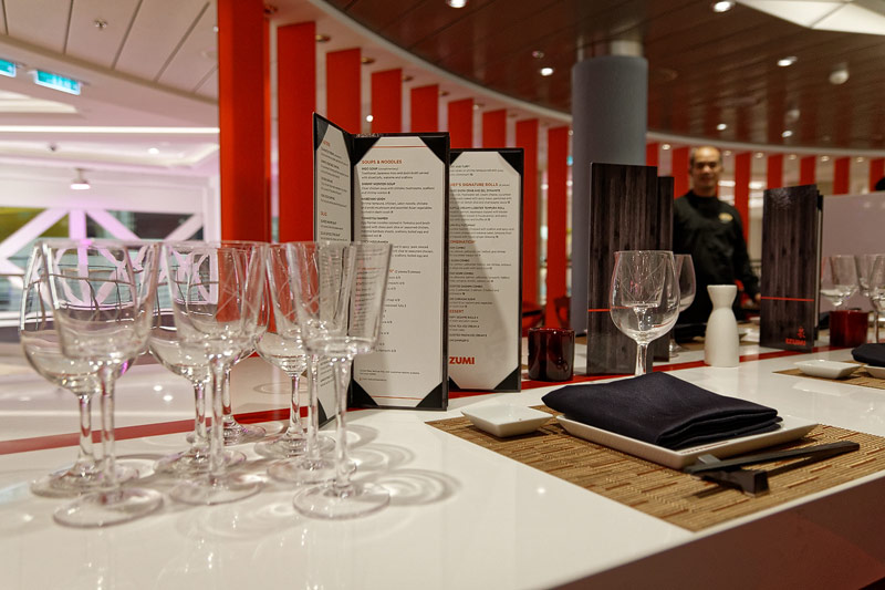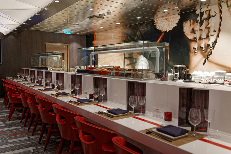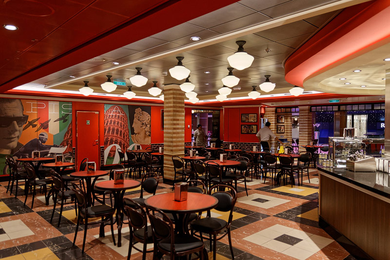 Restaurants der Quantum of the Seas: American Icon, Chic, The Grande, Silk, Coastal Kitchen, Devinly Decadence, Jamie's Italian, Chops Grille, Wonderland, Doghouse, Izumi, Johnny Rockets, Sorrentos, Windjammer Buffet