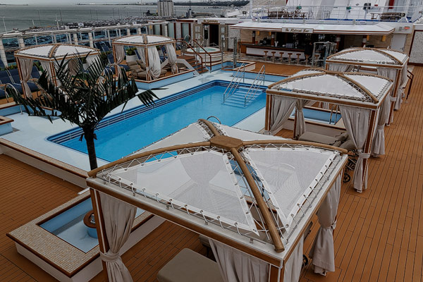 Pooldecks der Royal Princess: Pool, Retreat, Sanctury, Sea Walk und Seaview Bar