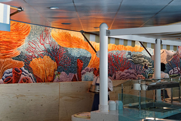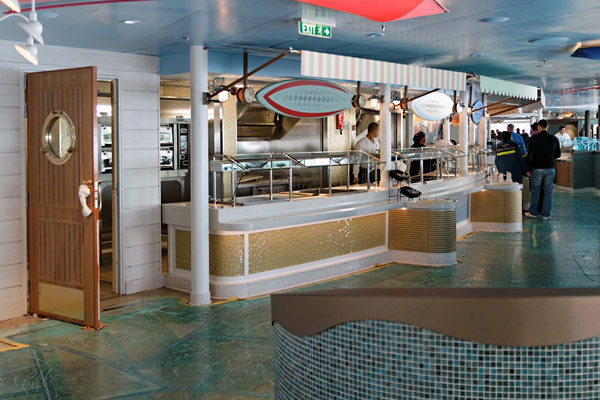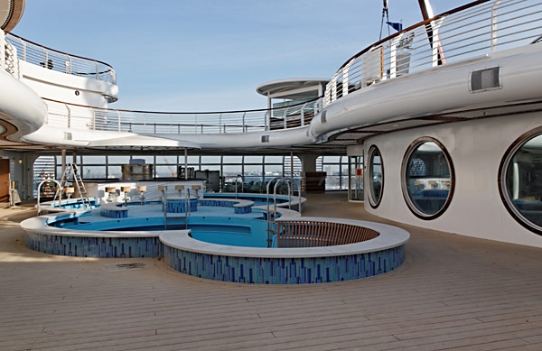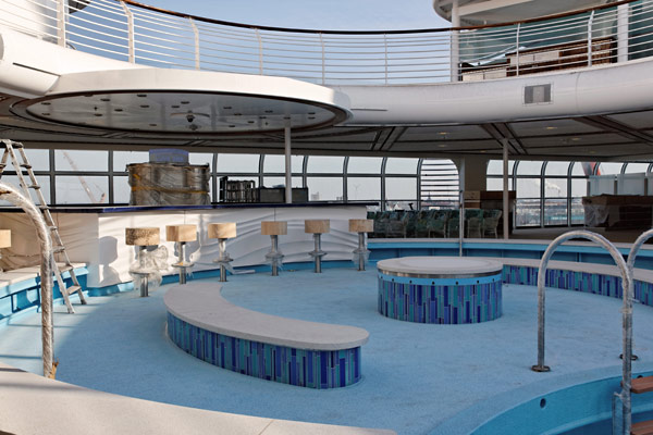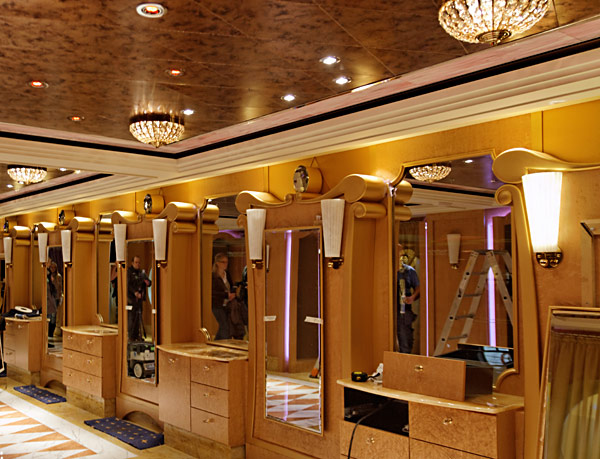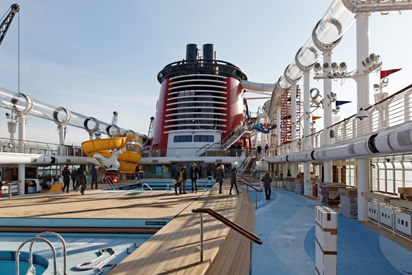 Einblicke in die Disney Fantasy am 5. Februar 2012 in Bremerhaven, kurz vor der Übergabe des Kreuzfahrtschiffs an Disney Cruise Line. (Die Fotos entstanden zu einem Zeitpunkt, als das Schiff noch nicht fertiggestellt war, an vielen Stellen sind daher noch unfertige Teile, Baustellen und Abdeckplanen zu sehen.)