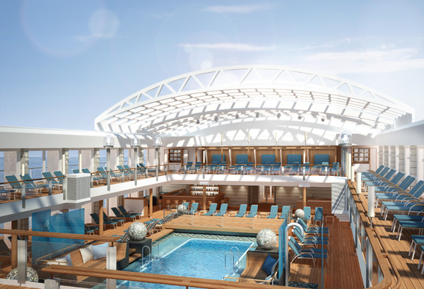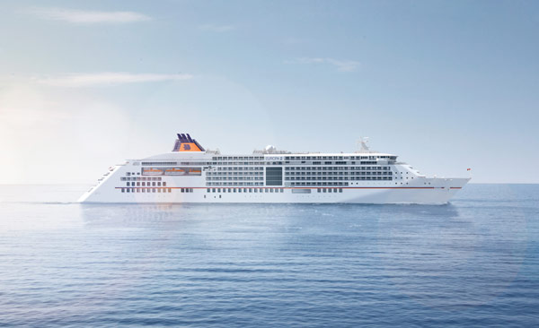 Bilder aus der Bauphase der Europa 2 und Computer-Renderings der Designpläne