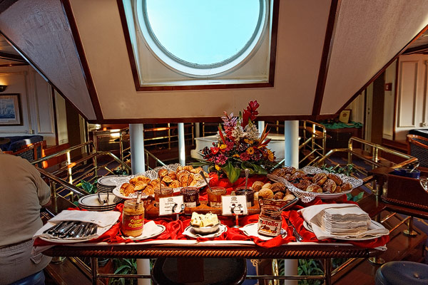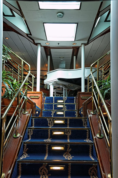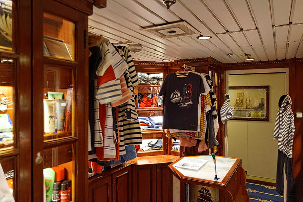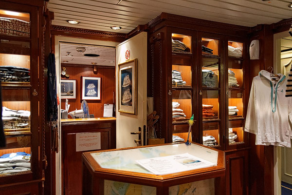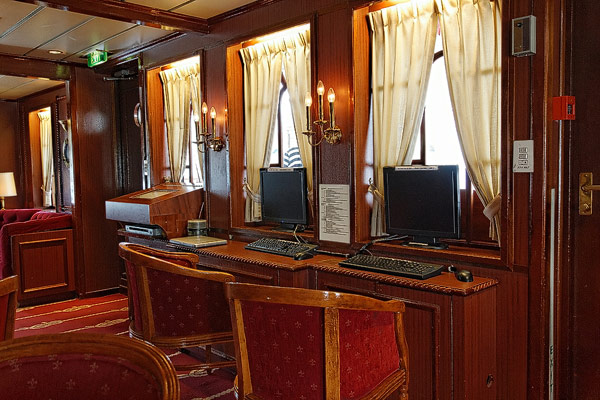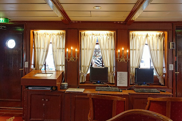 Sonstige Bereiche der Star Flyer: Bibliothek, Piano Bar, Shop, Purser's Office