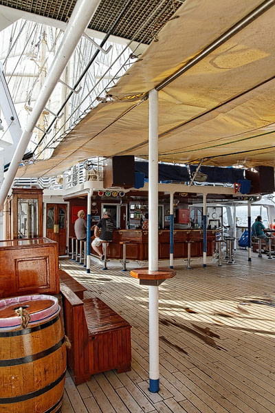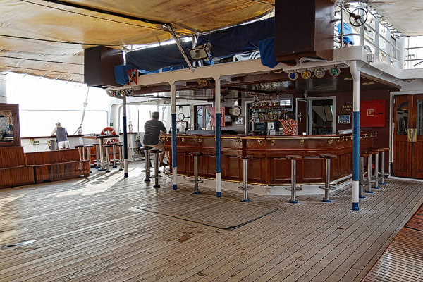 Die Tropical Bar der Star Flyer - gesellschaftlicher Mittelpunkt des Schiffs