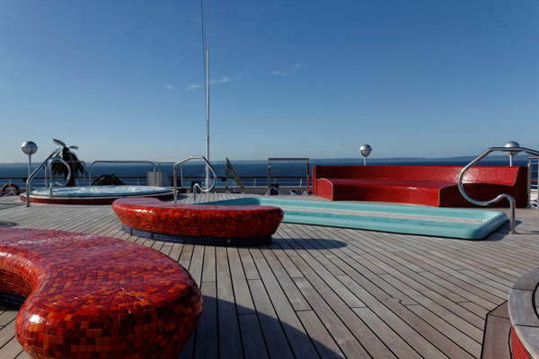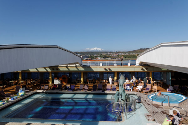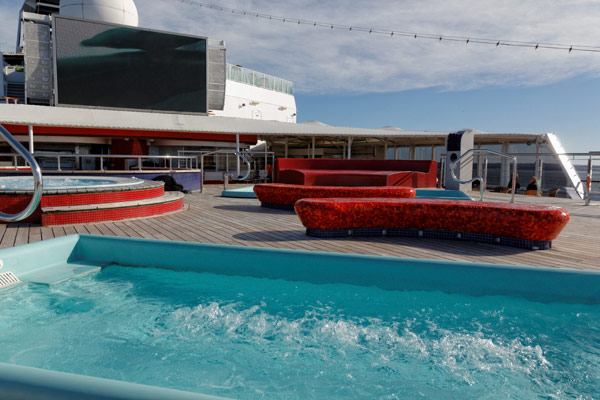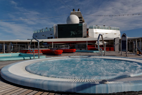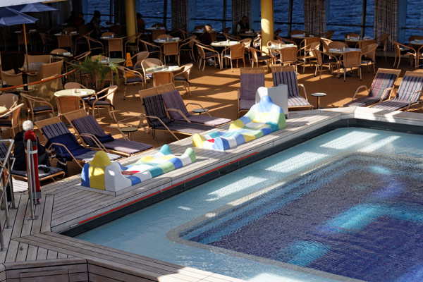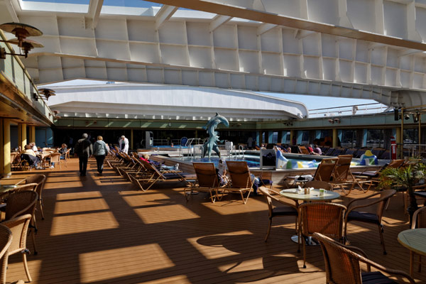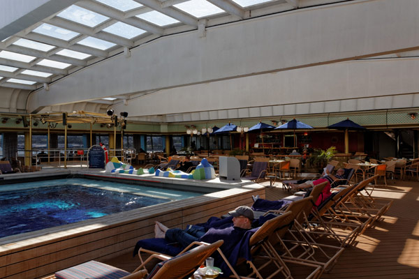 Pools der Veendam: "The Retreat"-Pools und Haupt-Pool mit Magrodome-Schiebedach