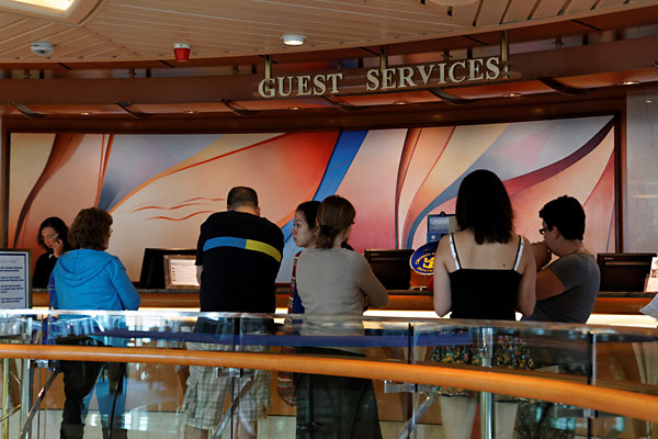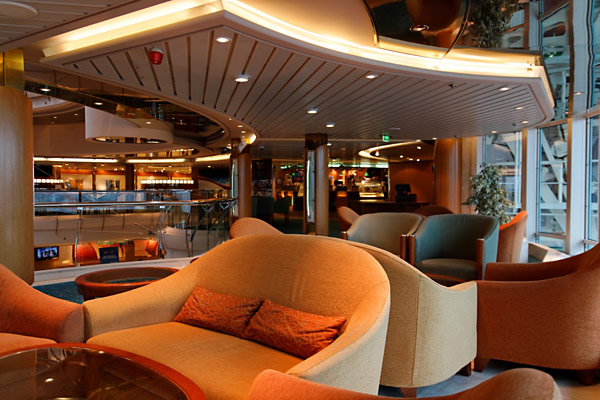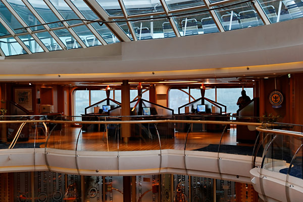 Das Atrium der Vision of the Seas mit Guest Relations, Exploration Desk, Internet-Cafe, Champagne Bar